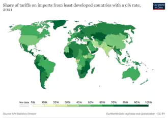 A meta 10.a tem um indicador. O indicador 10.a.1 é a "Proporção de linhas tarifárias aplicadas às importações de países menos desenvolvidos e em desenvolvimento com tarifa zero".[12]