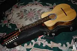 O Octavina tem um conjunto de 14 cordas em seis cursos: sexta-única, quinta-dupla, quarta dupla, 3-tripla, segunda-tripla e 1-tripla, é numerado a partir do fundo. Ela é ajustada de forma semelhante a bandurria, mas uma oitava inferior, dando: