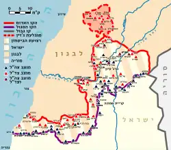 ![]() Mapa israelense de 1988 da faixa ocupada no sul do Líbano. | |