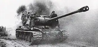 ![]() Militares soviéticos com um tanque IS-2. | |||