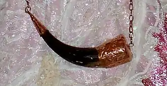 Oguê[1] é um apetrecho da cultura afro brasileira, inerente ao Orixá Oiá, Oxóssi e Obá. Objeto feito com chifre de boi ou de búfalo, utilizado como instrumento de percussão nos rituais internos de aguerê, sasanha, ilu acará e agueré, tem finalidade específica de emanar a energia da fartura, utilizado como símbolo do poder nas vestimentas e assentamentos de alguns orixás, denominado de ibá orixá. Semelhante ao polvarim usado pelos caçadores.