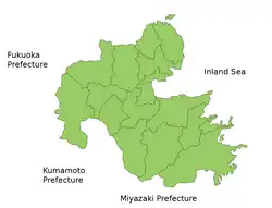 - ↑ Ōita Prefectural Government. (2009). Reassurance, Vitality & Growth of Ōita Prefecture, p. 5.
