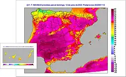 - ↑ a b Benayas, Victoria Torres (12 de junho de 2022). «El primer día de la ola de calor dispara los termómetros a 43 grados». El País (em espanhol). Consultado em 14 de junho de 2022