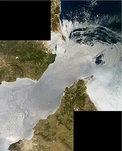 As ondulações da termoclina oceânica podem ser visualizadas por satélite porque as ondas aumentam a rugosidade da superfície onde o fluxo horizontal converge, e isso aumenta a dispersão da luz solar (como na imagem no topo desta página mostrando ondas geradas pelo fluxo de maré através da Estreito de Gibraltar).