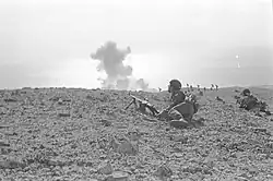 ![]() Paraquedistas israelenses em combate durante a incursão. | |||