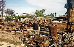 Os decepcionados opositores do movimento de independência, os Wanra e o exército indonésio massacraram pessoas em muitas partes do país e deixaram terra arrasada após a sua retirada. Um incidente particularmente grave foi o massacre da igreja de Suai, no qual cerca de 200 pessoas foram mortas em 6 de Setembro de 1999. No dia 25 de setembro, nove pessoas foram assassinadas em Lautém (caso Lospalos). Em Passabe, 64 pessoas foram mortas com facões e armas de fogo. O Batalhão de Infantaria Indonésio 745 de Lospalos deixou um rasto de violência e morte na sua retirada para o Timor Ocidental Indonésio.