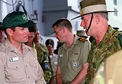 A inteligência Australiana estava confiante de que a pressão sobre o General Wiranto seria suficiente para parar o disciplinado exército Indonésio depois de Wiranto ter dado ordens claras ao Tenente-General Kiki Syahnakri, o comandante militar provincial em Timor-Leste. A violência havia diminuído uma semana antes da chegada dos australianos. Os poucos oficiais indonésios que se opuseram à ordem foram chamados à razão. Também ajudou o facto de o Ministro dos Negócios Estrangeiros Downer ter adoptado a interpretação indonésia de que os elementos criminosos nas forças armadas eram os únicos responsáveis pelas violações dos direitos humanos em Timor-Leste. Até o Tenente General Syahnakri, que era conhecido por ter estado envolvido no planeamento da estratégia da terra arrasada em Timor-Leste, trabalhou eficazmente com o Major General Cosgrove. Em 27 de Setembro, Syahnakri entregou oficialmente a sua responsabilidade por Timor-Leste a Cosgrove. Dentro de semanas, o exército indonésio retirou-se de Timor Leste. O último soldado indonésio deixou oficialmente Timor-Leste no dia 1 de Novembro.[10]