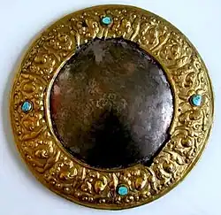 Além dessas regalias, quando o transe do Kuten se aprofunda, os assistentes que vinham apoiando o médium colocam um cocar em sua cabeça que pesa aproximadamente 14kg, embora em tempos anteriores pesasse mais de 36kg. O espelho circular é um atributo e ferramenta divina, conhecido como melong (tibetano: "espelho"), que é um símbolo comum do Dzogchen e seus ensinamentos.[17][9] O décimo quarto Dalai Lama dá uma descrição completa do processo de transe e possessão:[18]