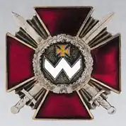 A insígnia da 2.ª classe repete exatamente a forma e os elementos da 1.ª classe, diferenciando-se pelo fato de os raios da estrela e os sabres serem prateados. Mede 45 mm entre as extremidades da cruz e apresenta no verso um fecho para fixação à roupa.[5]
