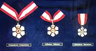 - ↑ Governo do Canadá (8 de dezembro de 2010), «Order of Merit (O.M.) Order» (PDF), Queen's Printer for Canada, Canada Gazette, 144 (25), consultado em 10 de dezembro de 2010