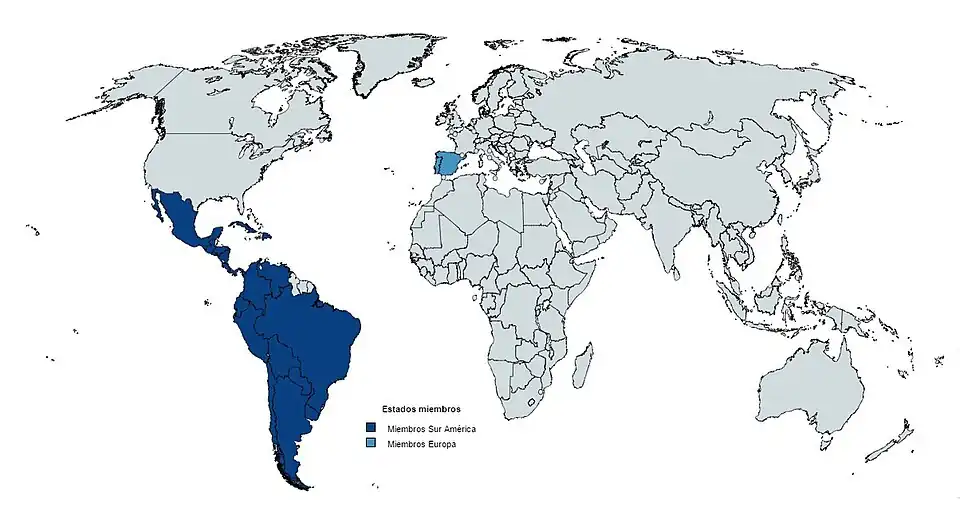 O organismo está composto actualmente por 21 países: Argentina, Bolívia, Brasil, Colômbia, Costa Rica, Chile, Cuba, República Dominicana, Equador, Espanha, El Salvador, Guatemala, Honduras, México, Nicarágua, Panamá, Paraguai, Peru, Portugal, Uruguai e Venezuela.