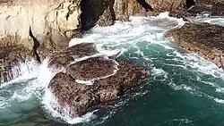 Tapete fóssil de ostras soldadas por uma crosta biológica a caminho de se transformar numa rocha biogénica. -