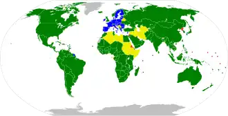 A OMC entrou em funcionamento em 1 de janeiro de 1995.[8] Em 23 de julho de 2008, Cabo Verde tornou-se membro.[9] Em 16 de dezembro de 2011, a Rússia tornou-se membro.