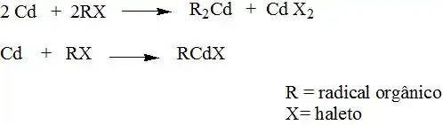 Os compostos organometálicos de cádmio apresentam estruturas sem ligações deficientes em elétrons. São menos reativos que os compostos organometálicos de magnésio e zinco, e apresentam reatividade e nucleofilia superior aos organometálicos de mercúrio.