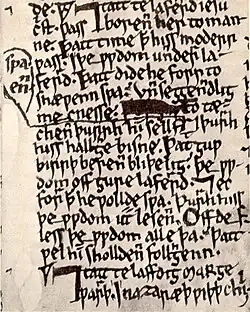 O pergaminho usado no manuscrito é da mais baixa qualidade, e o texto foi escrito de maneira desorganizada, visando a utilização econômica do espaço; está distribuído em linhas contínuas, como prosa, com as palavras e as linhas muito próximas umas das outras, e com diversas adições e correções, novas exegeses e leituras alegóricas amontoadas nos cantos das margens (como pode ser visto na reprodução acima). O lexicógrafo neozelandês Robert Burchfield sustenta que estas indicações "sugerem que ele era um 'rascunho de trabalho', que o autor tencionava que fossem recopiadas por um escriba profissional".[2]