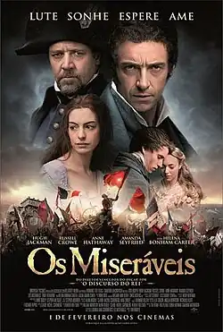Estrelado por Hugh Jackman, Russel Crowe, Anne Hathaway, Eddie Redmayne, Amanda Seyfried, Sacha Baron Cohen e Helena Bonham Carter, Os Miseráveis estreou nos Estados Unidos em 25 de dezembro de 2012, em Portugal, em 3 de janeiro de 2013, e no Brasil, em 1.º de fevereiro de 2013.[7][8]