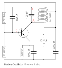 O resultado é que esta corrente circulante na bobina induz em sua outra metade uma outra corrente que é aplicada novamente à base do transistor através do capacitor de 100 pF.[2]