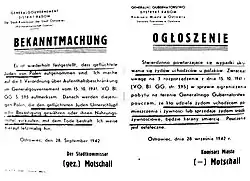 “Foram observados repetidos incidentes de judeus escondidos com poloneses...” um aviso assinado com a assinatura do comissário de ocupação da cidade Bruno Motschall em 1942