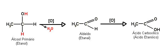 Os álcoois primários sofrem, na realidade, duas oxidações seguidas: a primeira resulta em um aldeído, porém os oxidantes que geralmente são utilizados na reação fazem com que esta prossiga e oxide o aldeído formado a ácido carboxílico. (CONSTANTINO, 2008).