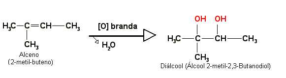 Os alquenos também sofrem reações de oxidação, nas quais a ligação dupla é oxidada e pode formar um diol ou quebrar, dependendo do método.