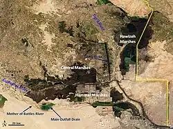 Os Pântanos da Mesopotâmia são uma zona húmida situada no sul do Iraque e, parcialmente, no sudoeste do Irã. Historicamente, os pântanos, principalmente compostos por separado, mas adjacentes aos pântanos Central, Hawizeh e Hammar, costumava ser o maior ecossistema de áreas úmidas do oeste da Eurásia. Era uma paisagem aquática rara no deserto, proporcionando habitat para os árabes do pântano e populações importantes de vida selvagem. A drenagem de parcelas dos pântanos começou na década de 1950 e continuou até a década de 1970 para recuperar a terra para a agricultura e a exploração de petróleo. No entanto, no final de 1980 e 1990, durante a presidência de Saddam Hussein, este trabalho foi ampliado e acelerado para expulsar os muçulmanos xiitas dos pântanos. Antes de 2003, os pântanos foram drenados para 10% do seu tamanho original. Após a queda do regime de Saddam Hussein em 2003, os pântanos se recuperavam parcialmente, mas a seca, juntamente com a construção e a montagem de barragens na Turquia, Síria e Irã têm dificultado a processo.