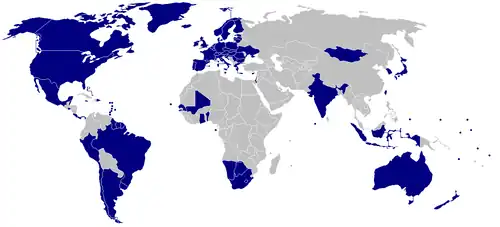 A Freedom House dos Estados Unidos publicou relatórios sobre o "estado da liberdade no mundo" com os países classificados como, países livres, países parcialmente livres ou não livres. Em 2008 há 90, 60 e 43 respectivamente.