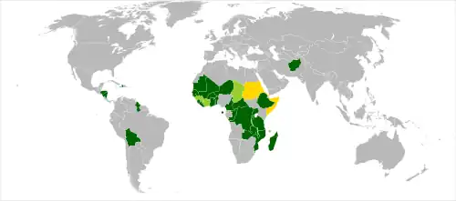 Desde janeiro de 2012, a Iniciativa PPME havia identificado 39 países como sendo potencialmente elegíveis para receber o perdão da dívida, 33 dos quais na África subsaariana.[2] Os 36 países que até agora receberam o perdão da dívida total ou parcial são:[1]