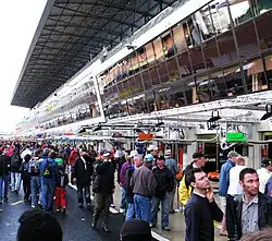 Sendo, também, o nome dada a edificação encontrada nos circuitos de automobilismo para abrigar o pessoal das equipes, veículos, oficiais de prova e convidados.