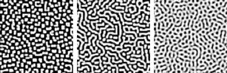 A teoria original, uma teoria de reação-difusão da morfogênese, serviu como um modelo importante na biologia teórica.[4] Os sistemas de reação-difusão têm atraído muito interesse como um modelo de protótipo para a formação de padrões. Padrões como hexágonos, espirais e listras são encontrados como soluções de equações de reação-difusão semelhantes a Turing.[5]