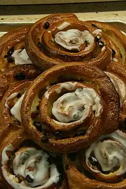 Na Alemanha e na Áustria, existe também uma variação deste bolo conhecida como Rosinenschnecke (caracol de passas, em alemão), preparada com recheio de maçapão ou Persipan e cobertura de glacê.[5]