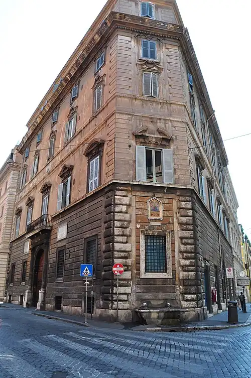O edifício está situado na junção da Via della Scrofa com a Piazza Nicosia, vizinho do Collegio Clementino. Apesar de ter sido construído originalmente num estilo renascentista tardio, o edifício recebeu diversas decorações barrocas em meados do século XVIII.