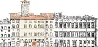 No século XV foi englobada pelo Palazzo Bartolini, depois Torrigiani, pelo que não é facilmente visível de perto, embora o seu perfil domine a vista da Via Porta Rossa.