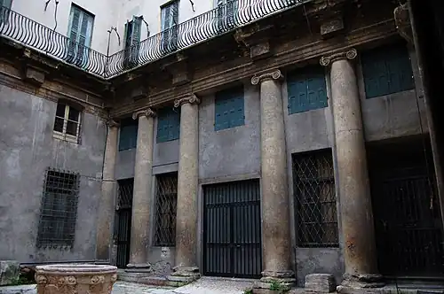 Pelo contrário, nenhuma dúvida subsiste sobre a identidade do cliente, Giambattista Dalla Torre: ligado por laços de parentesco com os vicentinos Valmarana e Thiene (o patrocinador do palladiano Palazzo Thiene), é amigo de intelectuais e artistas, sendo o primeiro entre todos Gian Giorgio Trissino, mas também do grande geógrafo Giovan Battista Ramusio, do médico Giovanni Fracastoro e do arquitecto Michele Sanmicheli.