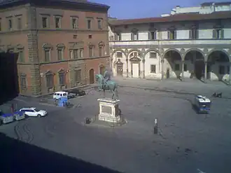 O Palazzo Budini Gattai em evidência na Piazza Santissima Annunziata.
