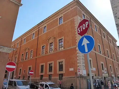 No final do século XV ficava no local um pequeno palácio de César Bórgia, um dos filhos do papa Alexandre VI (r. 1492–1503).[2][3] Mais tarde, o edifício passou para o cadeal Bartolomeo Della Rovere, um feroz adversário da família Bórgia.[2] Em 1565, este edifício foi demolido e um novo palácio foi construído por Averardo Serristori, embaixador do grão-duque da Toscana Cosimo I de' Medici na corte do papa Pio IV (r. 1559–65).[2][3][4] O edifício tornou-se a sede da embaixada da Toscana antes dela se mudar pra o Palazzo Firenze, no rione Campo Marzio, e permaneceu propriedade da família Serristori até 1821.[2]