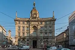 O edifício está situado na Piazza Cordusio, uma importante praça no centro de Milão. Apresenta uma fachada côncava que se adapta à forma elíptica da praça e abriga um grande nicho com mosaicos e uma cúpula octogonal coroada por uma lanterna no telhado.