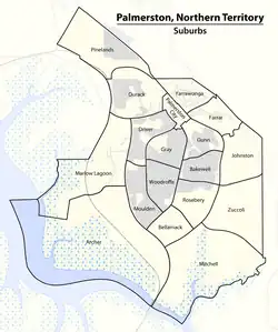 Palmerston é uma cidade situada perto de Darwin Harbour e tinha uma população de 33.695 habitantes no censo de 2016, tornando-a a segunda maior cidade do Território do Norte, que é escassamente povoado.[1] Palmerston é uma cidade-satélite planejada de Darwin, que é a capital e maior cidade do Território do Norte da Austrália.
