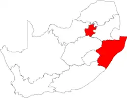 Em 1º de março, o primeiro caso de COVID-19 foi confirmado no país, sendo um homem que havia retornado com sua esposa e mais oito pessoas de Milão, na Itália,[1][3] viajando por Dubai.[4] Em 3 de março, o paciente relatou sintomas a um clínico geral e entrou em isolamento; o médico também foi isolado. Em 5 de março de, Zweli Mkhize, ministro da Saúde, anunciou o primeiro caso confirmado na região.[5][6][7] Para isso, epidemiologistas e clínicos do Instituto Nacional de Doenças Transmissíveis (NICD) foram enviados para KwaZulu-Natal em resposta ao caso; o paciente foi para o hospital de Grey, em Pietermaritzburg.[8]