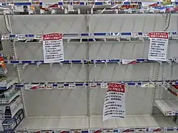 Em 1 de março, o primeiro-ministro Abe evocou a Lei sobre Medidas de Emergência para Estabilizar as Condições de Vida do Público, para regular a venda e distribuição de máscaras faciais em Hokkaido. Segundo essa política, o governo japonês instruiu os fabricantes a vender máscaras faciais diretamente ao governo, que depois as entregariam aos residentes.[101]