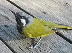 - ↑ a b BirdLife International (2016). «Nesoptilotis leucotis». Lista Vermelha de Espécies Ameaçadas. 2016: e.T22704070A93951227. doi:10.2305/IUCN.UK.2016-3.RLTS.T22704070A93951227.en