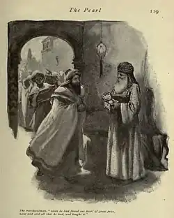 | “ | «Outrossim, o reino dos céus é semelhante ao homem, negociante, que busca boas pérolas; E, encontrando uma pérola de grande valor, foi, vendeu tudo quanto tinha, e comprou-a.» (Mateus 13:45–46) | ” |