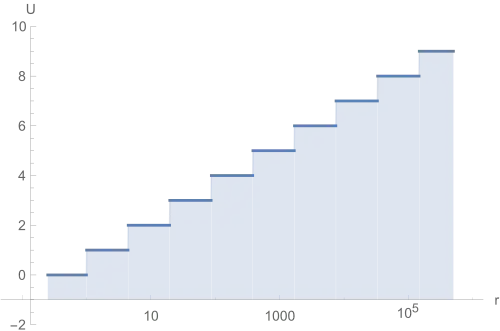 O resultado é o mesmo independentemente da escolha da base do logaritmo, desde que seja usada a mesma base em toda a fórmula; por exemplo, para "log" = log10, loge, ln ou log2, o valor calculado de U permanece o mesmo.