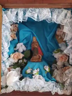 Uma “bonequinha”, de olhar simples e aparentemente ingênuo, trajando um vestido de cor laranja cujo comprimento vai até um pouco abaixo dos joelhos e uma capa, da mesma cor do vestido, calçando um par de sapatos pretos e segurando uma cesta que parece de frutas. Esta é a imagem de apenas cinco centímetros de comprimento, feita de louça e que em nada remete ao divino ou ao sagrado, mas que atrai milhares de peregrinos até a zona rural do município de Tibagi, na Região dos Campos Gerais, interior do Paraná.[39]