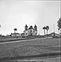Servia de Matriz uma Eremita a Capelhinha construida de maderas, muito mal construida, e em pessimo estado e suponho eu ser o primeiro que celebrei a primeira Missa na Eremita, e não me consta que fosse bensida; e por ver o mao estado em que se achava não procurei a provizão para Benzer-a; Existia nella uma imagem de barro venerado como padroera; mas vendo a imperfeição da mesma imagem que pela sua enperfeição não podia ecitar devoção alguma; e nem me constava se era benta não procurei benzer-la por ser invalida a benção por ser de barro e imperfeita;[14] [...] En vista pois do mao estado da Matriz dei providencia para uma nova Matriz aprir o alicerce da Capella mor, depois de pilada a taipa atte uma certa altura conheci que a terra não dava para ser levantada precisava de pessoas que tivesse conhecimento d'officio de pilar terra levantar parede estes não havia nesta Freguesia, consultei com as primeiras pessoas para se levantar a nova Matriz de parede de pedra e cal visto ser muito facil a pedra nesta Freguezia; como de facto convierão que se abbandonasse a taipa e se construisse a nova Matriz de pedra e cal, foi dando alguma providencia para aprontar o material neste tempo que se ia aprontando o material desandava a Capella que foi o desabalo a vinte nove de Junho de mil oitocentos cinquenta e oito ano, [...][15]