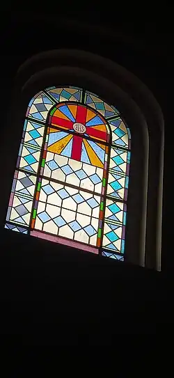 Ao centro do escudo, avista-se a santa cruz de Nosso Senhor pela qual pendeu a salvação do mundo, vindo entrelaçada com as letras “A” e “M” que sustentam bolsas de medicamentos em alusão ao título mariano. As duas letras possuem ao menos dois significados: «Ave Maria» e «auspice Maria» (sob a proteção de Maria).