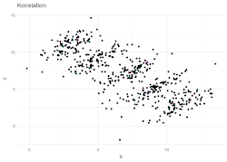 O paradoxo de Simpson também pode surgir para correlações. Nesse caso, duas variáveis que aparentam ter (digamos) uma correlação positiva uma com a outra, na verdade têm uma correlação negativa devido a alguma variável de confusão “à espreita”. Berman et al.[21] fornece um exemplo no contexto da economia, onde um conjunto de dados sugeriria que a demanda total estaria positivamente correlacionada com o preço (ou seja, preços mais altos levam a mais demanda), em contradição com a expectativa. Uma análise detalhada revela que o tempo é a variável de confusão: a plotagem de preço e demanda versus tempo revela a correlação negativa esperada em vários períodos. Se a influência do tempo for ignorada pela simples plotagem da demanda em relação ao preço, a correlação se inverte.