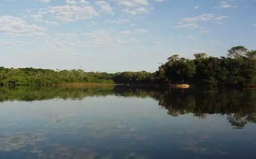 As espécies de árvore de grande porte mais típicas dos igapós do Cantão são os landis e as piranheiras. Ambas frequentemente ultrapassam os vinte metros de altura, e ambas tem seus frutos dispersados por peixes. A piranheira tem esse nome por causa de uma segunda contribuição que faz ao ecossistema aquático: em fevereiro, suas folhas caem, e as folhas novas que brotam atraem grandes quantidades de lagartas. As lagartas caem na água quando o vento balança as copadas, atraindo cardumes de piranhas e outros peixes.