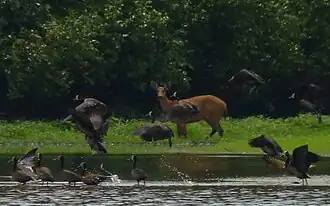 As praias arenosas e bancos de lodo associados também são o ambiente preferido para alimentação de aves aquáticas como o colhereiro, o tapicuru e várias espécies de patos selvagens. Um dos residentes mais curiosos das ilhas e praias maiores é o anhuma, que é visto no parque em todas as estações do ano.