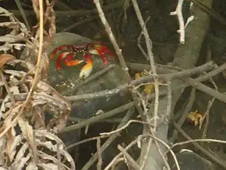 Caranguejo na área de mangues.
