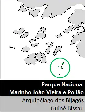 - ↑ a b c d e f g h i «Parque Nacional Marinho João Vieira e Poilão (PNMJVP)». IBAP Instituto da Biodiversidade e das Áreas Protegidas. 2018. Consultado em 22 maio 2018. Arquivado do original em 6 de janeiro de 2018